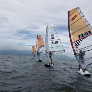 普段、ヨットのみのレースを拝見することは多々ありますが、ウインドクラスのレースも行われたため、国体選手のコース展開などとてもためになる時間でした。